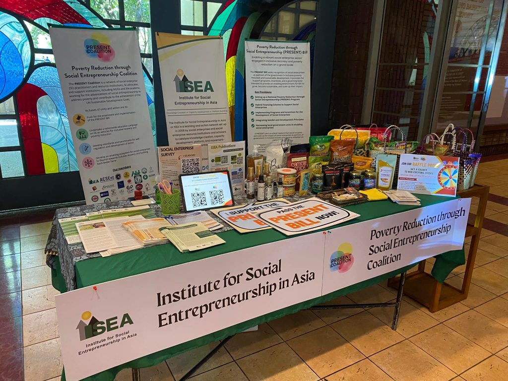 On October 17, a mini-booth was setup by the Institute for Social Entrepreneurship in Asia (ISEA) and the Poverty Reduction through Social Entrepreneurship (PRESENT) Coalition during the Oxfam Pilipinas‘ Partners Conference and Launch dubbed as “Patas na Bukas” held at UP Bahay ng Alumni, Quezon City, Philippines.