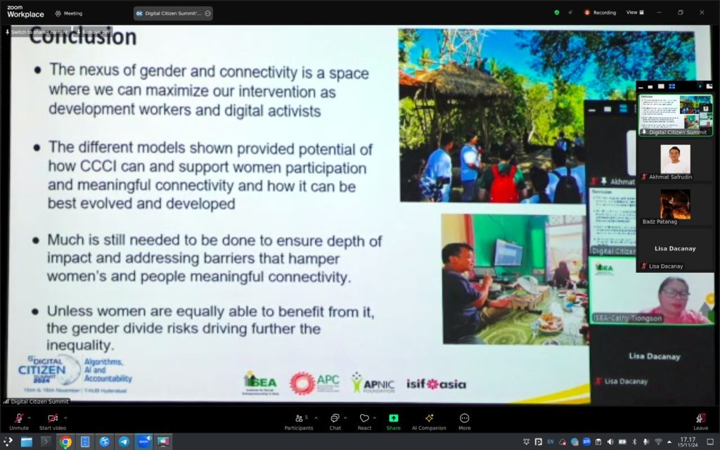 One of the technical sessions was hosted by ISEA dubbed as “Wired for Life: Community-centered Connectivity and Innovations as part of unlocking the potential of community-driven connectivity for a digitally inclusive future. The session’s panel provided examples of best practices of the School of Community Networks in Indonesia, share important insights and perspectives from a model-building project of community-centered connectivity initiatives linked to social enterprise and local economic development in Bangladesh, China and the Philippines and perspectives in developing gender strategies in CCIs.