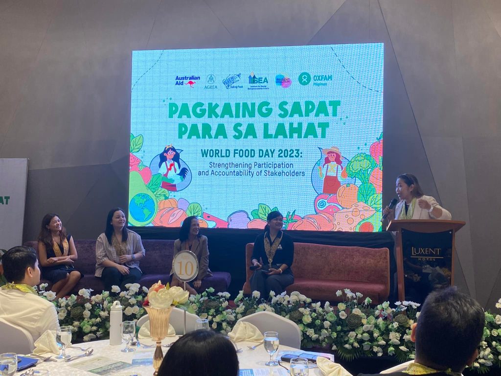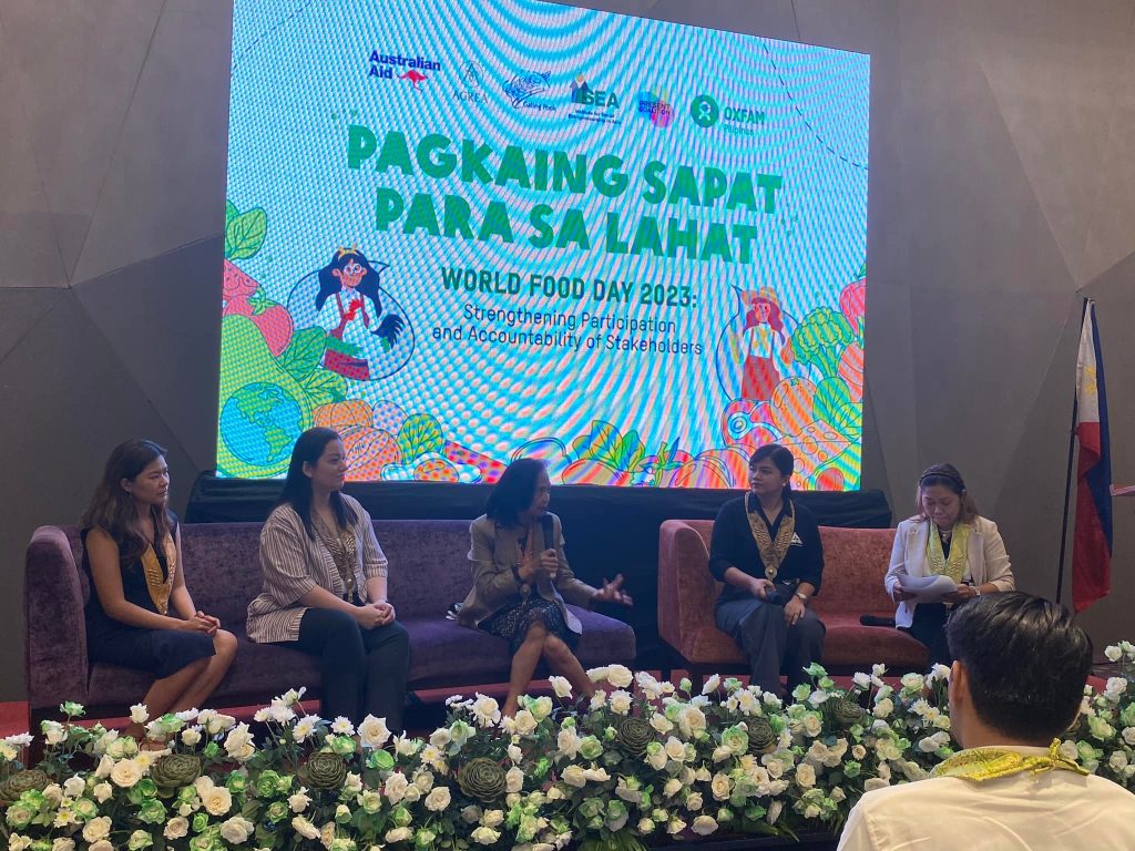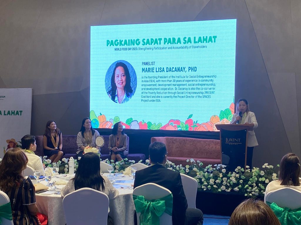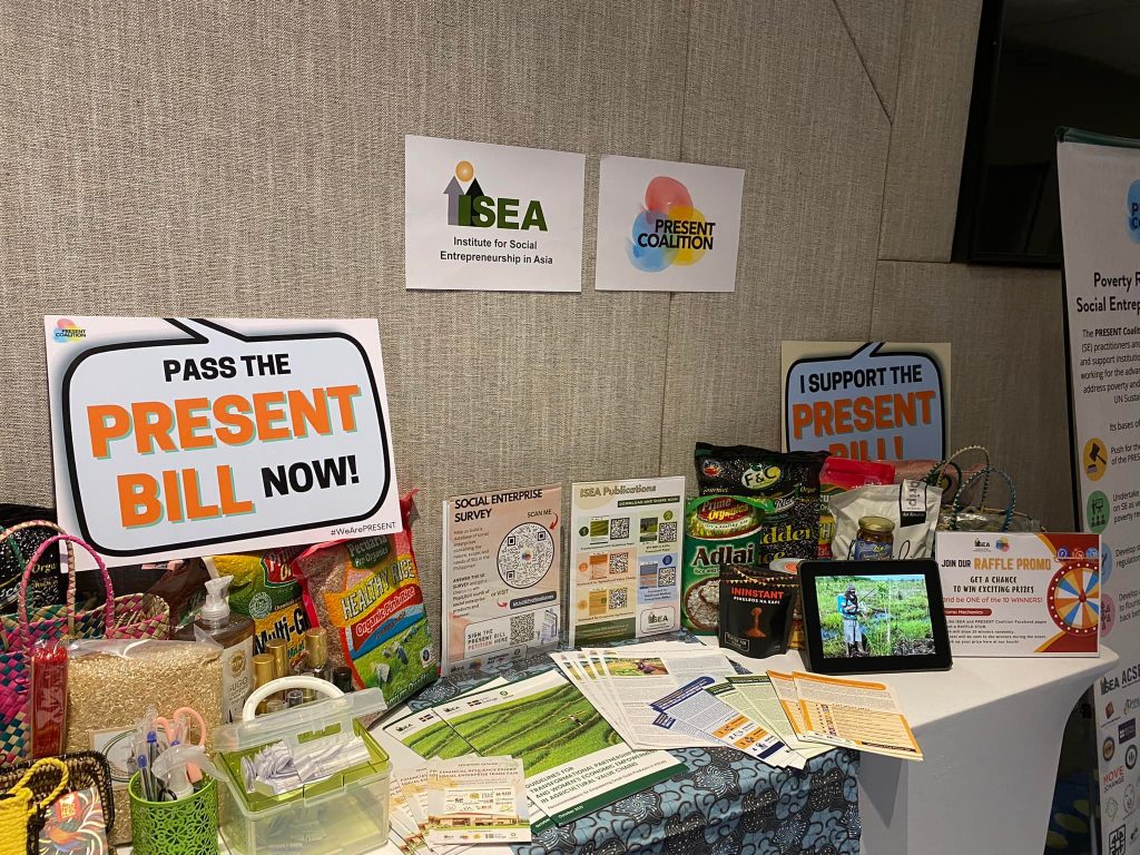 As part of its launch, the #WorldFoodDay2023 Celebration was also celebrated in the event in which a panel discussion on Social Accountability happened featuring the project implementors including ISEA President and PRESENT Coalition Convener, Marie Lisa Dacanay. ISEA-PRESENT coalition also had a booth during the event featuring social enterprise products and Pass the PRESENT Bill signages.